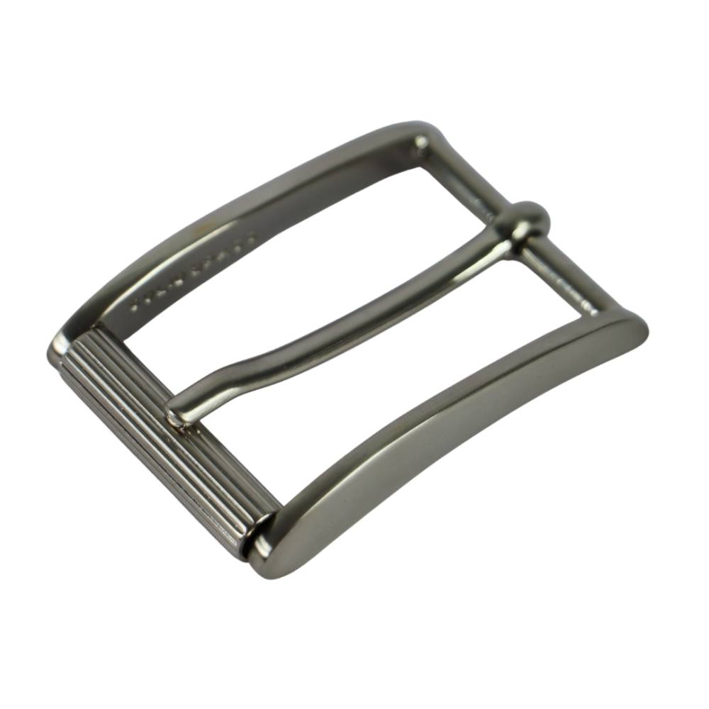 Boucle de ceinture à rouleau strié en laiton massif couleur argent, parfaitement adaptée pour le montage d'une ceinture de 30 mm de largeur.