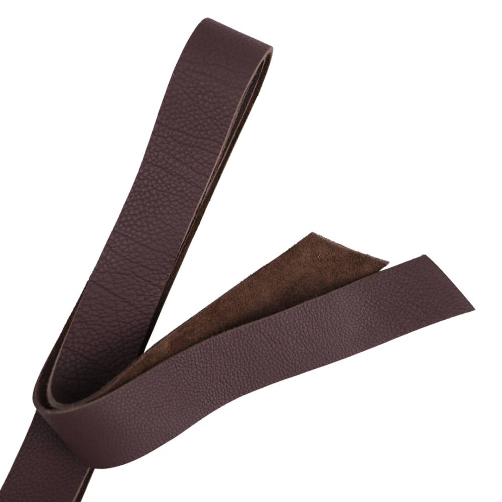 Lanière en cuir de taurillon grainé tannage minéral couleur chocolat.